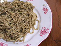 Természetesen ismét felmerül a jól ismert kérdés: mit főzzünk? Én gulyásra vágytam, és volt is itthon valami szépséges marhahús, de mivel abból már készült a héten egy fogás, inkább más alapanyag után néztünk. Végül tesómmal megállapodtunk a tésztában. Mondtam neki, hogy nézze meg a karácsonyra kapott szakácskönyvemet, úgysem főztem még belőle semmit. No így esett a választás erre. Magamtól talán nem csináltam volna meg, nem bíztam volna a sok-sok zöldfűszerben, hogy nem lesz túlságosan markáns. Nos sajnos a zöldfűszerek nem voltak éppen frissek. A tavaly burjánzó petrezselyem is még csak most kezd életre kelni a kertben, így arról kb. csak a szükséges mennyiség felét sikerült leszedni, a maradékot szárítottal pótoltam. Kaptunk ugyan egy bokor rozmaringot nemrég, ami most lett elültetve, de az szegény elég gyászos volt, úgyhogy egy nagyobb, a konyhában száradó ágról tördeltem le a leveleket. Megmondom őszintén ezekkel a kisebb konzervhalakkal nem vagyok nagy barátságban. Szeretem ugyan a halat, de nem így szöröstül-bőröstül. El is szörnyedtem mikor megláttam a konzervben, hogy ennek is szinte csak a feje van levágva :) Nodehát alaposan meg lett darálva, úgyhogy... (o; Kicsit ragadós lett a massza, amit én annak tudok be, hogy nem voltak frissek a növények, pedig tettem 3 ek.-lal a tészta főzővizéből is bele. Viszont kétségtelenül nagyon gyorsan készen van, aki siet annak ideális.